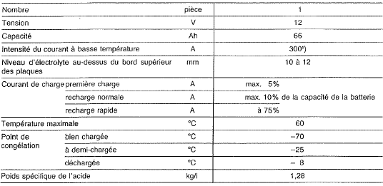 La disponibilité de la batterie est approximativement reconnaissable à la densité de l'électrolyte.