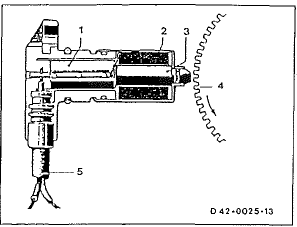 Pour la mesure de la vitesse de la roue, sont utilisés des compte-tours, c-à-d. Des générateurs d'impulsions, en forme de bâtonnets. Dans le système à quatre canaux installé dans nos véhicules, la vitesse de chaque roue est mesurée séparément.