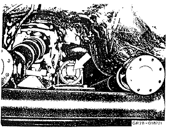10 Désaccoupier l'arbre de transmission vers ie pont ar, tout en tournant !A roue ar gauche.