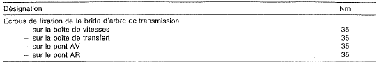 Nota: les joints à cardan de l'arbre de transmission au pont av sont décalés les uns par rapport aux autres de 50. 2 Présenter l'arbre de transmission sur la bride de l'ensemble mécanique et serrer la bride à 35 nm.