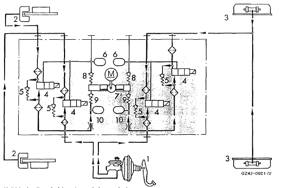 Dans la phase de tenue de la pression, la pression de freinage émise par l'unité hydraulique aux freins de roue est maintenue constante, les sorties et les entrées des électrovalves étant fermées.