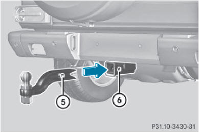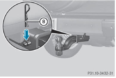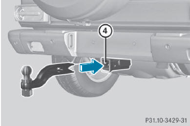 d'autres usagers. Il y a risque d'accident et de blessure. Montez et verrouillez la rotule conformément aux descriptions. Si la rotule est posée, assurez- vous avant chaque trajet qu'elle est bien verrouillée avec le goujon fourni et la goupille à ressort correspondante. |