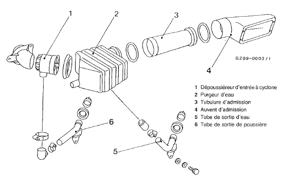 Le séparateur d'entrée est relié aux filtres à air au moyen d'un manchon de caoutchouc.